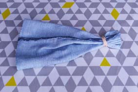| Turn the tube back the right way out to form a pouch, and squish it into a nice shape. Arrange the plainer of two seams up the centre of the pouch | |