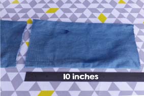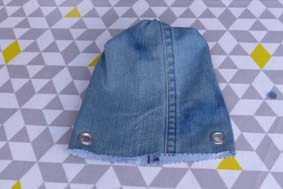 | Chop of the hem, and then lop off a 10" (that's 25cm) section of leg, leaving you with a denim tube. | |