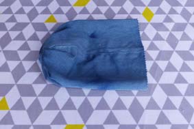 | Turn the tube back the right way out to form a pouch, and squish it into a nice shape. Arrange the plainer of two seams up the centre of the pouch | |