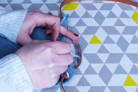 | If you want your pouch to keep it's shape, use superglue to glue the belt to the back of the bag. Make sure you're happy with the position of the buckle before you glue! | |